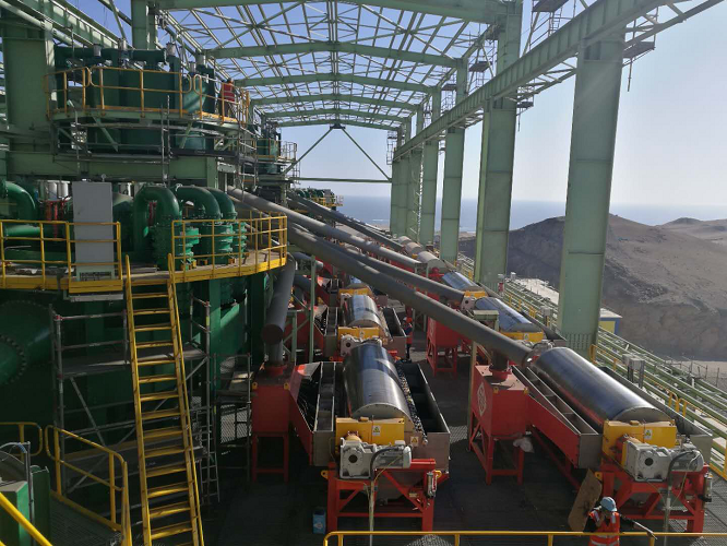 CTS型濕式永磁筒式磁選機(jī)是順流型筒式磁選機(jī),用于磨選工藝較粗顆粒的濕式分選作業(yè)段,在國(guó)內(nèi)外鐵礦山廣泛應(yīng)用。BGRIMM研制了我國(guó)第一臺(tái)濕式永磁筒式磁選機(jī),多年來(lái)獲得了長(zhǎng)足的發(fā)展。目前,筒徑Ф1200 mm 以上大型磁選機(jī)已經(jīng)廣泛應(yīng)用,Ф1500 mm系列磁選機(jī)正逐漸成為新建選廠首選磁選裝備。